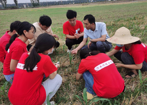 Regardless of the high temperature, the teachers and students of the tiny sci-tech service yard of Yangjie Village, experts from Henan Agricultural University are busy in the field, guiding farmers to do technical management and pest control to ensure a promising harvest.